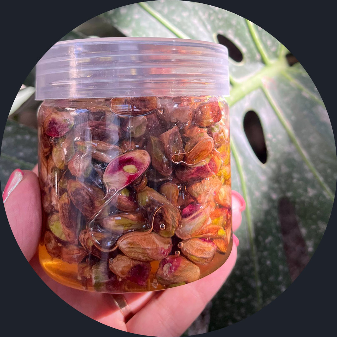 ترکیب عسل طبیعی و مغز تازه پسته . بسیار تازه و مقوی . بعد از ثبت سفارش شما اماده میشود.